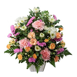 商品説明使用花材 アーティフィシャルフラワー(造花)の菊、葉、カーネーション、胡蝶蘭サイズ約20cm×13cm×奥行11cm注意点退色する場合がございます。直射日光はなるべくお避け頂けるとより美しさが長持ちします。 野外に飾る場合は、防
