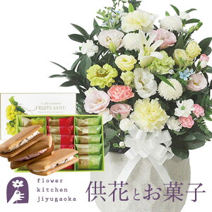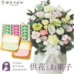商品詳細 【13200供花アレンジメント】 アレンジ:幅約33cm×高さ約60cm 【銀座千疋屋「銀座フルーツクーヘン」】 内容量:イチゴミルク、レモンはちみつ、メロンミルク、バナナチョコ 各2個 賞味期限:製造日より約120日(常...