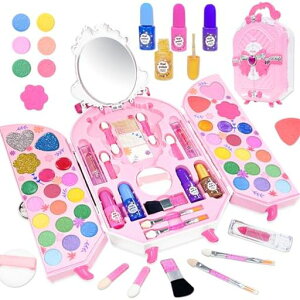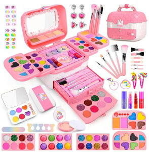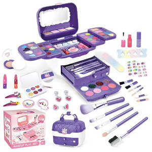 水性で肌に優しい素材を使用し、あんしんして遊ぶことができます!リップやアイシャドーやハイライトやお化粧ブラシなどのメイク道具を揃え、子どもが夢中になるで
