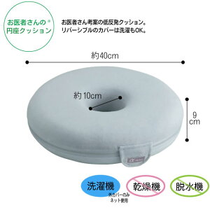 【商品説明】 ●お医者さん考案の低反発クッション。リバーシブルのカバーは洗濯もOK。 ●サイズ/約直径40×厚さ9cm、中穴:約10cm ●重さ/615g(平均値) ●材質/クッション:低反発ウレタンフォーム、保護カバー:ポリエステル...