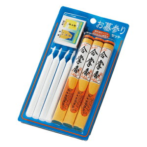 お墓まいりにはこれひとつでOK。線香、ローソクはもちろんのこと、マッチもついています。プラスチックケース入りなので、持ち運びにも便利です。