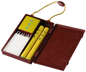 「日常五心」が書かれた上蓋裏のスペースに補充用のローソクや線香といった小物が入る大容量仕様。 ローソク、線香等の消耗品は、なくなりましたらお手持ちの品を詰めてお参り下さい。