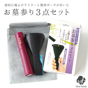 ケース付きお線香、ポーチ ●風よけライター、ケース付きお線香にポーチがついた便利なお墓参りセットです。 ●フード付きの風よけライターは風があっても火が消えにくく、お線香の火付けがスムーズです...