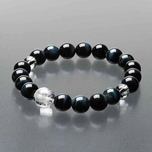 仏壇屋 滝田商店 特選腕輪念珠 天然石ブレスレット 青虎目石 龍彫り本水晶 10mm玉数珠ブレスレット・ブレス数珠・ドラゴン・竜・お守り・腕輪数珠【滝田商店発行 証明書付】サイズ:内周約17cm・内周...