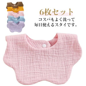 汚れやよだれなどを吸収する、吸水性に優れた表面素材。裏側には防水シーを使用しているので、洋服などに浸透する心配がありません!落ち着いた色合いを揃えた6枚セッ。コスパもよく洗って毎日使えるスタイです。くるっと回して使える