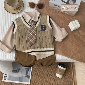 サイズ名着丈身幅肩幅袖丈7054262020●素材:上身頃:綿100%下身頃:綿85% ポリエステル15%ベスト:ポリエステル97% ポリウレタン3%ベージュネクタイ:ポリエステル95% ポリウレタン5%グレーネクタイ:綿65% ポリ...