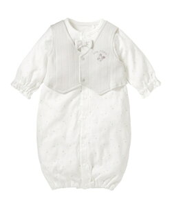 ミッキー、ミニーのオシャレなデザインがかわいい!産まれてから退院時のセレモニーとして、また、お宮参りやお食い初めのフォーマル着として着ていただける、セレモニー用のツーウェイオールです。男の子用は、薄グレーのベストと蝶ネクタイがスマート...