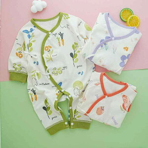 ・安全等級: Aクラス・主な素材: 綿100%・対象年齢: 新生児(0〜1歳、身長80cm以下)・性別: 男女兼用・袖丈: 長袖・開閉方法: 斜め合わせ紐・スタイル: カジュアル・カラー展開: 緑野菜、ピンクいちご、紫花、カーキクマ、...