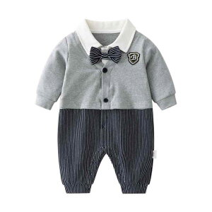 フォーマル長袖ベビーロンパース 吸水性・耐久性に優れた素材を使用した 優しい肌ざわりの肌着 素敵でかっこいいボーイズにぴったりのフォーマルスーツ