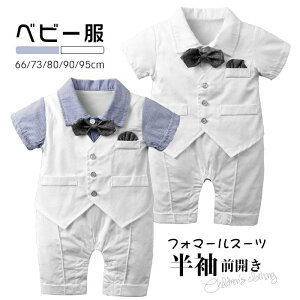 ロンパース ベビー服 男の子 新生児 夏 薄手 コットン 紳士 フォーマル 半袖 カバーオール 出産祝い 誕生日 結婚式 お宮参り 50 60 70 80