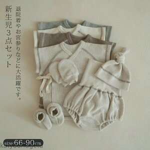 品名退院着 ベビースーツ キッズ 可愛い 子供服 女の子 男の子 3点セット ・肌触りの良いワッフル生地のベビー3点セット ・女の子も男の子も着れるナチュラルなデザイン ・柔らかく肌触りの良い綿混素材で通気性も