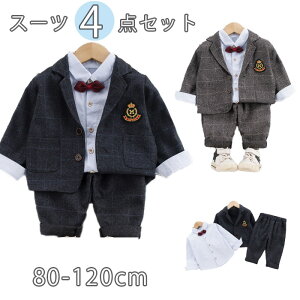 キッズ スーツ 男の子 フォーマル ベビースーツ 赤ちゃん スーツ 長袖 4点セット ネイビー ブラウン