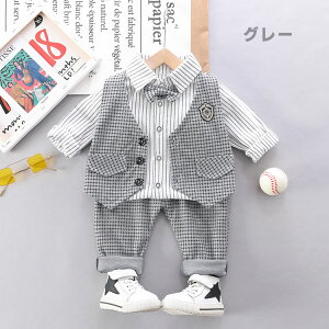 商品説明商品名 オシャレでかっこいいデザインが男の子らしさをアップします! ベスト・ズボン・シャツのフォーマル3点セット! 定番のストライプ柄、お子様フォーマルスーツ着用する時にファションアップになります♪...