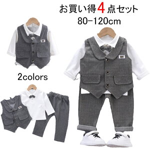 Item Information 商品名 お買い得4点セットフォマールスーツ 子供服 フォーマル 男の子 ベビー 結婚式 ジュニア 素材 コットン カラー ライトグレー/ダークグレー サイズ 80、90...