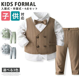 子供スーツ 子供服 4点セット キッズ 男の子 ベビー服 赤ちゃん セットアップ 綿100% 初節句 小学生 入園式 入学式 卒園式 結婚式 発表会 お宮参り 誕生日素材 コットンカラー ブラウン|グリーン|ブルーサイズ...