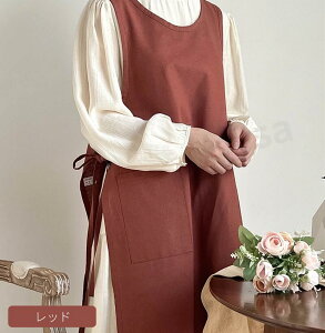 ドレスのようなエプロン。抜け感のあるおしゃれなエプロンワンピース。綿は非常に肌ざわりが良く、通気性・吸水性に優れ、耐熱性が高くエプロン。サイドにある紐によってサイズ調節して着用できるので、大きいサイズにも対応可能...