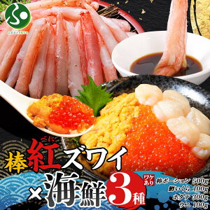 ■商品内容:紅ズワイ棒ポーション500g・ホタテ300g・鱒イクラ100g・チリ産雲丹100g 計1kg ■お届け日:最短で13時までのご注文は当日発送となります (土日祝日・年末年始を除く) ■送料:送料無料(沖縄・離島、一部地域は配送