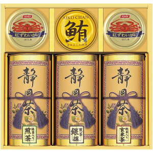 ●商品名/和彩撰(静岡茶・かに缶・ツナ) CKT-80W●商品内容/煎茶 銀撰(80g)・抹茶入り煎茶(80g)・抹茶入り玄米茶(80g)・鮪油漬フレーク(70g)×各1、紅ずわいがにほぐし身(55g)×2●箱サイズ/約25.1×27...