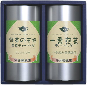 本格緑茶の味わいが楽しめる、ティーバッグの詰合せ ブランド名:仲井芳東園 品名:豊味緑茶ティーバッグ詰合せ 品番:LTP-20 材質:茶筒:スチール缶 セット内容:緑茶の王様ティーバッグ(2g×18p)・一番煎茶ティーバッグ(5g×1...