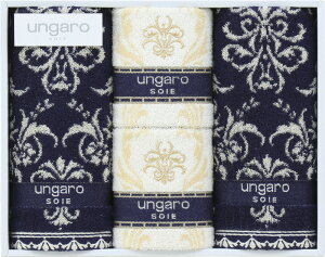 ブランド名:ウンガロ シリーズ名:Uサファイア 品名:タオルセット 品番:DR50048 材質:綿100% セット内容:バスタオル(60×120cm)・フェイスタオル(34×75cm)・ゲストタオル(34×35cm)×各1 原産国:中...