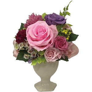 ●商品名/ラフィネ ピンク bc-13101-P●商品内容/プリザーブドフラワー(バラ、アジサイ、ラスカス)、フェイクフラワー(アジサイ、リーフ、ヒバーナム、マム)、リボン・花器(陶器)・お手入れのしおり付(現品約16×14×21cm...
