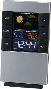 ●商品内容(サイズ):(14×8×4cm)●材質・規格・生産国:ABS樹脂 ●単4乾電池2本使用(別売) 中国●箱サイズ:8.5×4.8×14.7cm ●これからの天気予報や温度、湿度がカラー表示されるみやすい多機能時計です。バックラ...