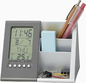 ●商品内容(サイズ):(13.5×7.5×9cm)●材質・規格・生産国:ABS樹脂 ●単4乾電池2本使用(別売) 中国●箱サイズ:9.8×8.5×14.5cm ●ポケットが2つ付いたお洒落な多機能デスクスタンドです。 機能:時計、アラ...