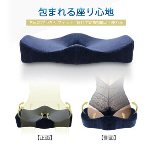 ・人間工学に基づいて設計されたおしりの痛みを気にせず快適な座り心地の低反発クッションです ,クッションの前に適当な傾斜をつけて、太ももへの圧迫感を軽減し、長時間座っても血行がよくにする。 ・両側の弧線形状の設計でお尻の