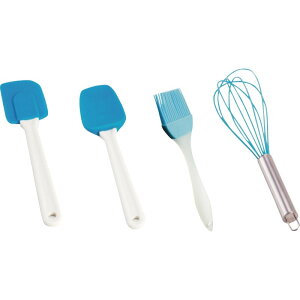 製品品番・B1049554商品構成スパチュラ(25×5cm)・スプーンスパチュラ(25.5×5.8cm)・ハケ(20.5×4cm)・泡立て(28×6cm)×各1商品説明シリコン製のキッチンツールセット。スパチュラ、スプーンスパチュラ、...