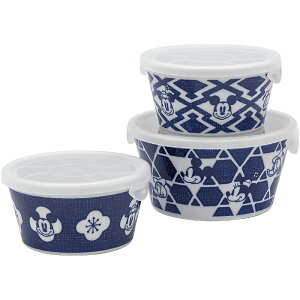 製品品番・C6100587商品構成S(11×11.5×6cm・300ml)×2、M(13.5×14×7cm・600ml)×1商品説明ミッキーマウスと仲間たちのすました表情のフェイスアートが、松皮菱・破れ籠目・梅といった日本の伝統的な和...