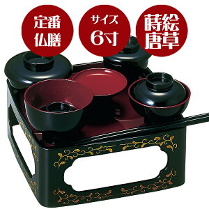 お盆やお彼岸・ご法事の時に仏さまに精進料理をお供えする器と、精進料理をセットにした商品です。 器は お膳、飯椀、汁椀、平椀、壺椀、高杯、お箸がセットになっています。 お膳部分はプラスチックではなく木製で...