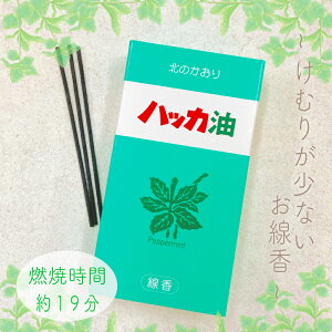 〜 株式会社北見ハッカ通商のハッカ油とお線香がコラボ!? 〜 北海道のお土産としても定番な《北海道北見名産》のハッカ油を配合したお線香は、 鼻にスッと抜ける爽やかなハッカ の香りが心地良く、 気持ちを落ち着かせたいときやリフ