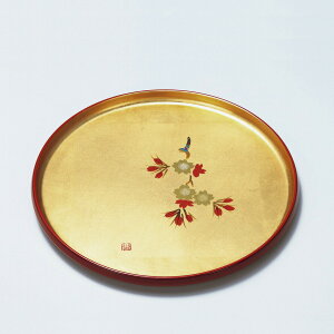 があります。※画像はイメージです。商品タイトルと一致しない場合があります。鮮やかな山茶花の蒔絵が美しい、山中塗の丸盆です。普段使いにも最適です。サイズΦ25×1.5cm個装サイズ