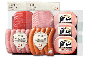 名称 金澤ハム工房 WA-40 内容量 ・厚切りロースハム(63g)×3 ・ホワイトロースハム(68g) ・生ハム(58g) ・チューリンガーウインナー(126g) ・熟成ウインナー(126g) 原材料名 [生ハム] 豚ロース肉(チリ...