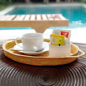 ヤシの2,900円アタで編まれた長方形の収納ボックス Cタイプ 4,680円 人気の天然素材アタで編まれた薄型のお盆トレイ。