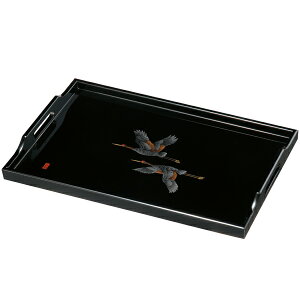 昭和レトロ感あふれる昔ながらの和風な紀州漆器のお盆。商品名 長手盆 黒 吉兆鶴 45cm。材質 木製。サイズ(約) 奥行き28.5×横45×高さ4.2cm。塗装の種類 カシュー塗装。生産国 日本製(和歌山県...