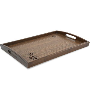 AKOZLIN お盆 トレイ 木製 桜柄 トレー ランチトレー 長角膳 ウッドトレー 持ち手付き 角型 長手盆 漆塗り 和風 木目 定食用 業務用 家庭用 42×28×4cm