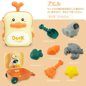 サンドモールドやシャベルが入っています。 使った後は、カートにお片付け。 お砂場遊びはもちろん、海水浴やレジャーシーンにもおすすめです。 ●サイズ:約H19×W19×D14cm(取っ手含ま