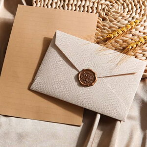 手紙セット 封筒6枚 便箋20枚 封緘シール6枚 ラブレター メッセージカード 麻布柄 お見舞い 誕生日 招待状 結婚式 お祝い手紙 お礼状用 (ベージュ) 送料無料 【セット内容】封筒6枚+封緘シール6枚+便箋20枚セット【