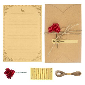 【レトロ&モダンデザイン】古典的なラビット柄とモダンな赤い信封が融合したレターセット。便箋10枚、信封3枚、シール3枚のコンパクトセットで、手紙やプロポーズの手紙に最適です 【高品質紙張】100gsmの厚手牛皮紙を使用...
