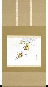 仕様 サイズ 掛け軸寸法:尺八横 約横65×縦135cm 収納箱 1.外箱 2.高級桐箱 説明 三柑の実のひとつとしても有名な柘榴。その実にはたくさんの種が詰まっていることから、子宝に恵まれるといわれている縁起物のひとつです。国内表装・肉