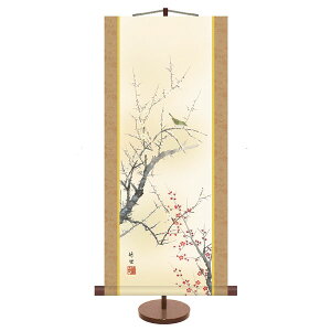 飾る場所を選ばない便利な専用のスタンド付きです。 持ち運び、収納に便利な化粧箱が付いています。 掛け軸とスタンドを同時に収納できます。 仕様 説明 ほのかな香りが漂ってきそうな紅白梅。 ※この作品は、特殊工芸技能(高精細デジ