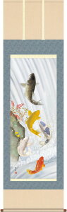 仕様 サイズ 掛け軸寸法: 約横55×縦195cm 収納箱 1.外箱 2.高級桐箱 説明 真鯉と緋鯉の仲睦ましい夫婦鯉、その眼つきは力強く、まるで本当に 生きているかの様です。 口を開け勢い良く滝を登る様を迫力ある筆致で 表現した素晴...
