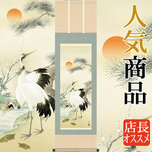 仕様 サイズ 掛け軸寸法: 尺五立 約横54.5×縦190cm (標準サイズです・一間床に最適) 仕様 表装 : 洛彩緞子本表装 本紙 : 新絹本 軸先 : 陶器 高級桐箱付き ※各アイコンの意味は、こちら 説明 旭日を浴びて...
