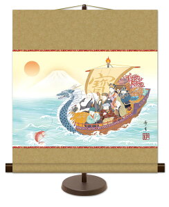 飾る場所を選ばない便利な専用のスタンド付きです。 持ち運び、収納に便利な化粧箱が付いています。 掛け軸とスタンドを同時に収納できます。 仕様 説明 暮らしに良運を招く縁起題材が勢揃い。専用スタンド付きで、ちょっとした空間に