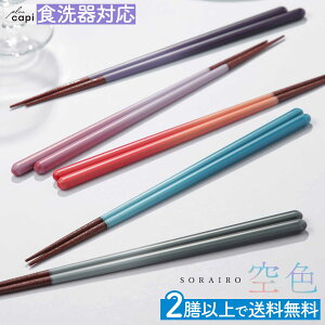 青空や夕焼けなど5つの空をイメージしたグラデーションが美しいお箸。ポップすぎず、若狭塗箸の伝統的な大和色を感じさせる色づかいは食卓に上品な彩りを添えてくれます。箸先は滑り止め付きなので、普段使いのお箸にぴったりです。非
