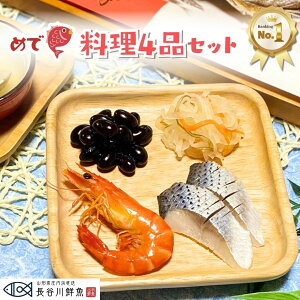 お祝い向けの縁起物料理を4品揃えました。解凍しお皿に盛り付けるだけ♪