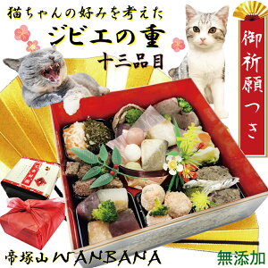 商品情報猫用 おせち料理 ジビエの重総カロリー:382.5kcal ■原材料・・・ 1、寒ぶり 2、三色団子 3、鹿もも肉、ブロッコリー 4、馬肉、ブロッコリー、小豆 5、無塩かたくちいわし 6、紅鮭、ブロッコリー 7、鹿もも肉、...