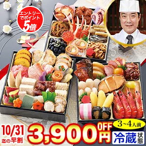 商品番号 660 名称 京都祇園料亭「岩元」監修おせち 匠 カニver 内容量 三段、6.5寸、47品目 量の目安 3〜4人前 原材料、アレルゲン一覧 原材料、アレルゲンについてはこちら 保存方法 そのまま冷蔵庫で保存 消費期限 20...