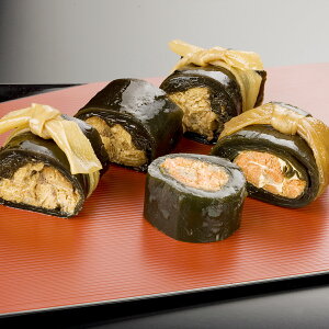歯舞産の棹前(さおまえ)昆布を使用した昆布巻き4種(鮭・ぶり・たらこ・にしん)セットです。棹前昆布は一般的な昆布に比べ早採りされているために食感が柔らかく、まったりとしているのが特徴です。鮭・ぶり・たらこは全て国産素材